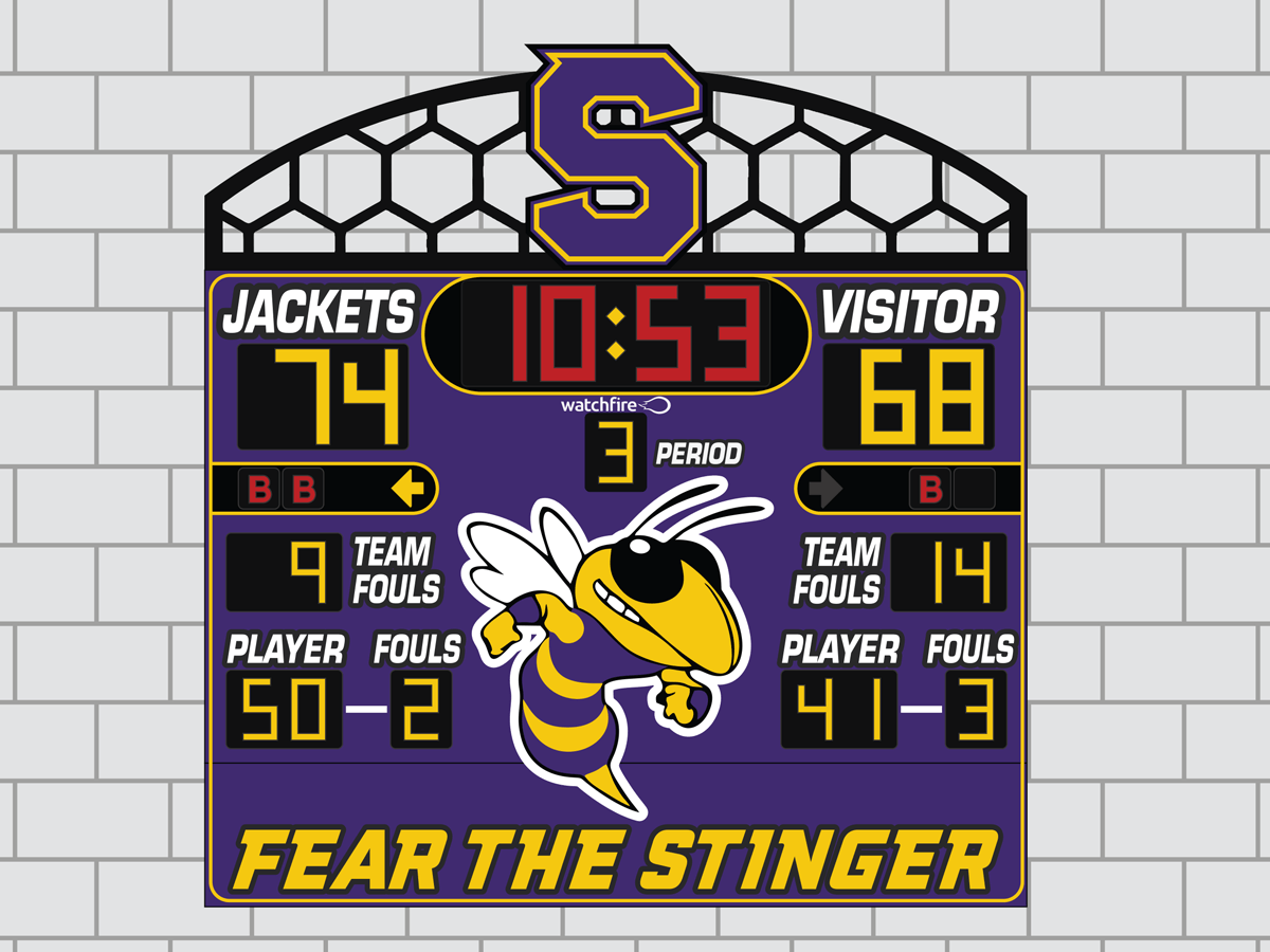 Decorative Truss | Let visitors know “this is our house” with a mascot that literally pops off the truss. It’s time to get fans talking with a jaw-dropping scoreboard. Watchfire specializes in creating truly unique and artistically designed scoreboard trusses for an indoor gym, outdoor stadium or sports complex. Seamlessly add crystal-clear audio with the Watchfire Sound system behind a team-branded mesh covering.
