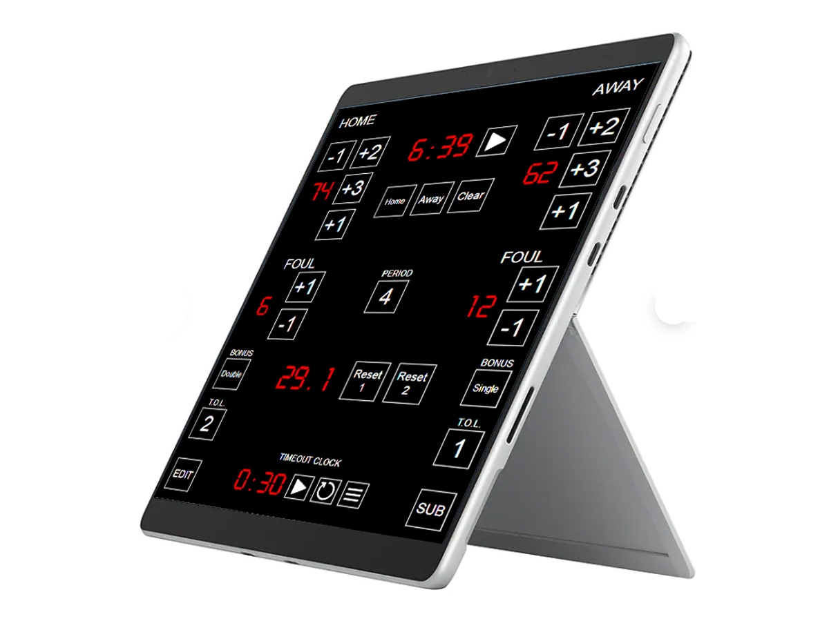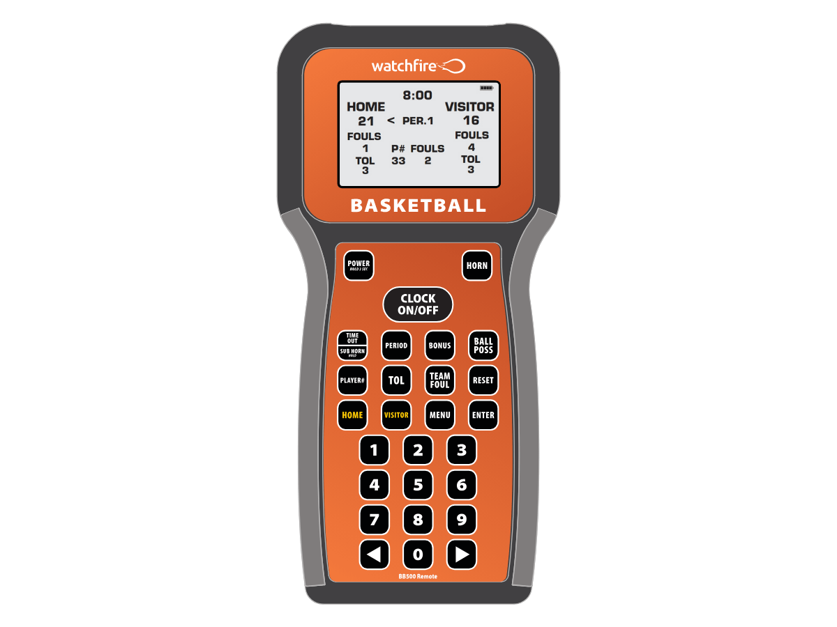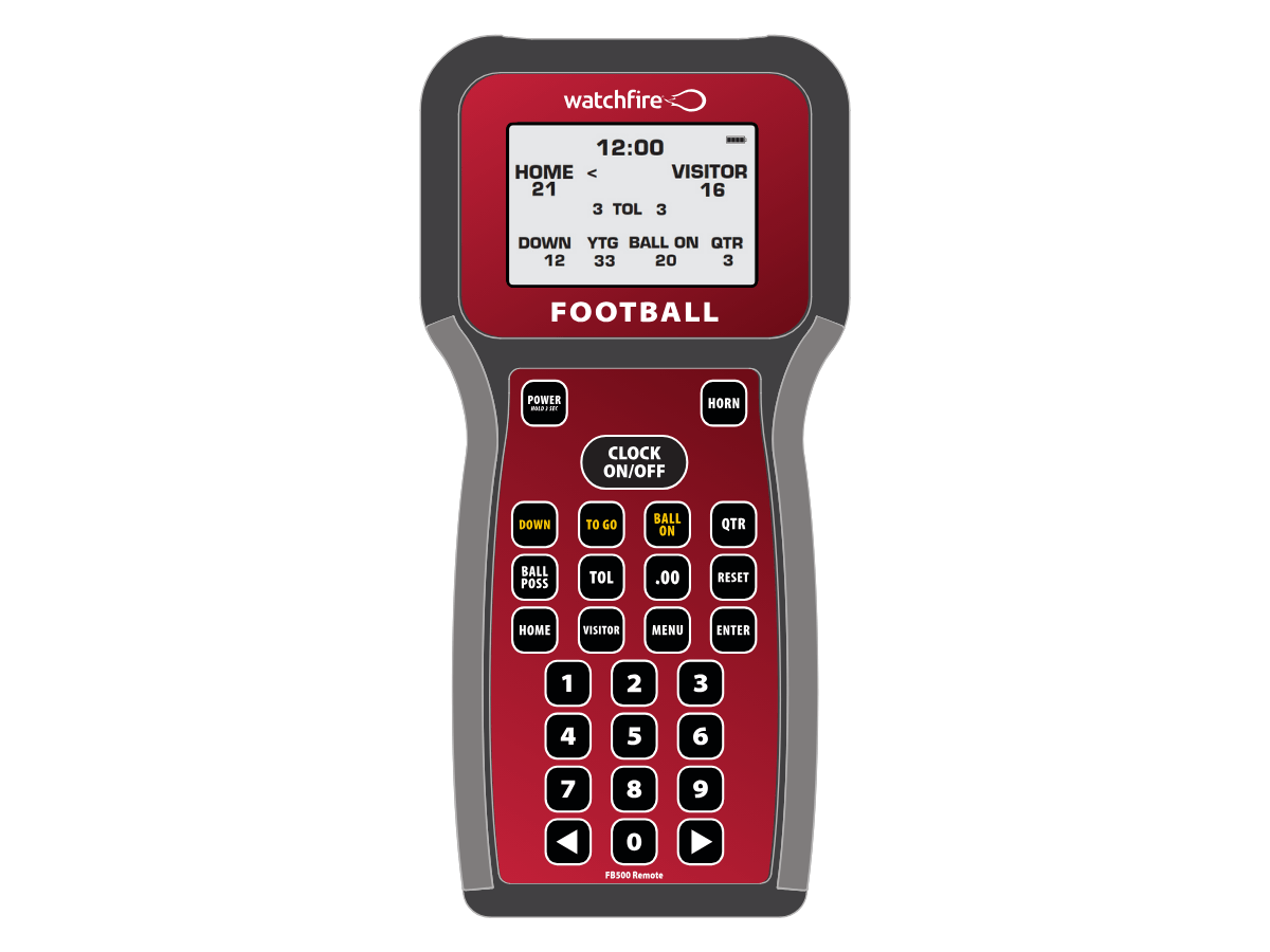 Watchfire offers a variety of controller options. Our multisport controller can score and time 15 different sports and celebration home score flashing. Our handheld controllers are sports specific and ideal for youth and league play. Our video scoreboards also support tablet scoring.